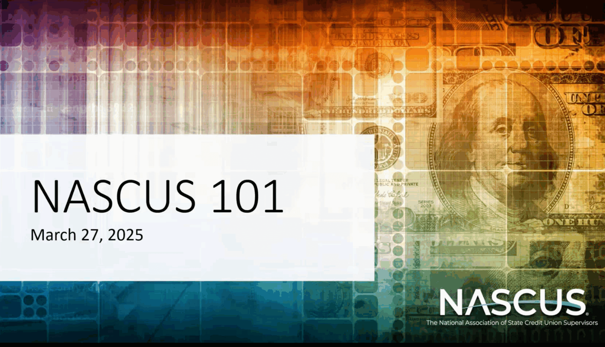Watch our NASCUS 101 video to learn who we are, what we do, and how we bring regulators, credit unions, and system partners together to strengthen the state credit union system. It’s a quick and easy way to understand the value of NASCUS membership and engagement.